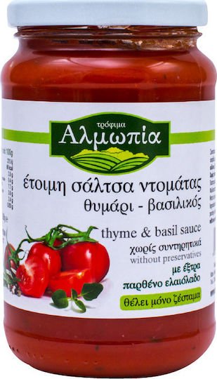 ALMOPIA Tomato Sauce with Thyme and Basil is a flavorful Mediterranean-style sauce made from ripe tomatoes, delicately seasoned with aromatic thyme and fresh basil.