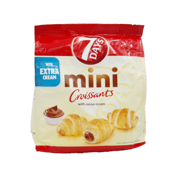 Dough: Wheat flour , vegetable oils (palm oil, sunflower oil), sugar, yeast, salt, stabilizer (mono- and diglycerides of fatty acids), vanillin, acidifier (citric acid), preservatives (calcium propionate, potassium sorbate). Cream filling with cocoa flavor 39%: sugar, palm oil, skimmed cocoa powder 7%, skimmed milk powder, ethyl alcohol, emulsifier, (polyglycerides of fatty acids), vanillin, thickener (sodium alginate), preservative (potassium sorbate). Produced in a factory that handles as raw materials: eggs , peanuts, hazelnuts, almonds, peanuts, pecans, sesame, celery.