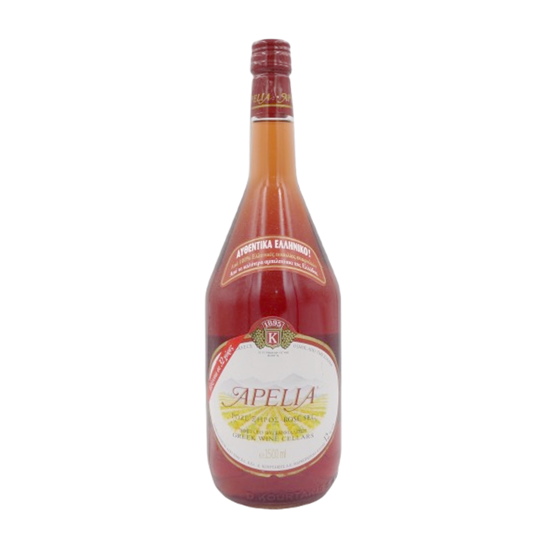 Apelia Rosé Dry is a refreshing Greek rosé wine produced by Greek Wine Cellars (Kourtaki), available in a 1500ml (1.5L) magnum bottle.