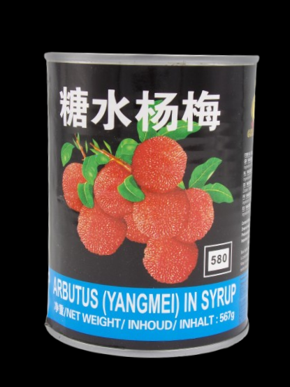Arbutus in syrup refers to the Chinese strawberry tree fruit (Arbutus unedo) preserved in a sweet syrup. These bright red fruits have a flavor described as a mix of strawberry and lychee, with a sweet and slightly sour taste. They are typically sold canned and used in fruit salads, jams, jellies, desserts, or as a topping for pancakes and waffles.