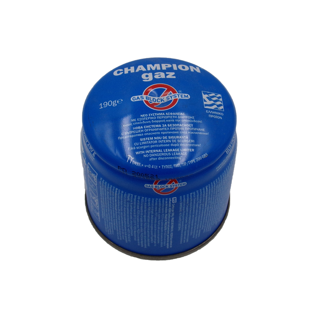 “BUTANE. Pressurized bottle. Extremely flammable gas. Hydrocarbons rich in C3 C4: No 270 990 9- EU Label. Net weight: 190 g. This bottle must only be used with CAMPINGAZ devices of the direct pressure butane category that operate with the CAMPINGAZ C206 bottle. This bottle is manufactured in accordance with European Standard EN 417 and is equipped with a system that prevents dangerous gas leaks when the bottle is accidentally disconnected. Do not puncture or burn even after use. WARNING: NOT REFILLABLE.