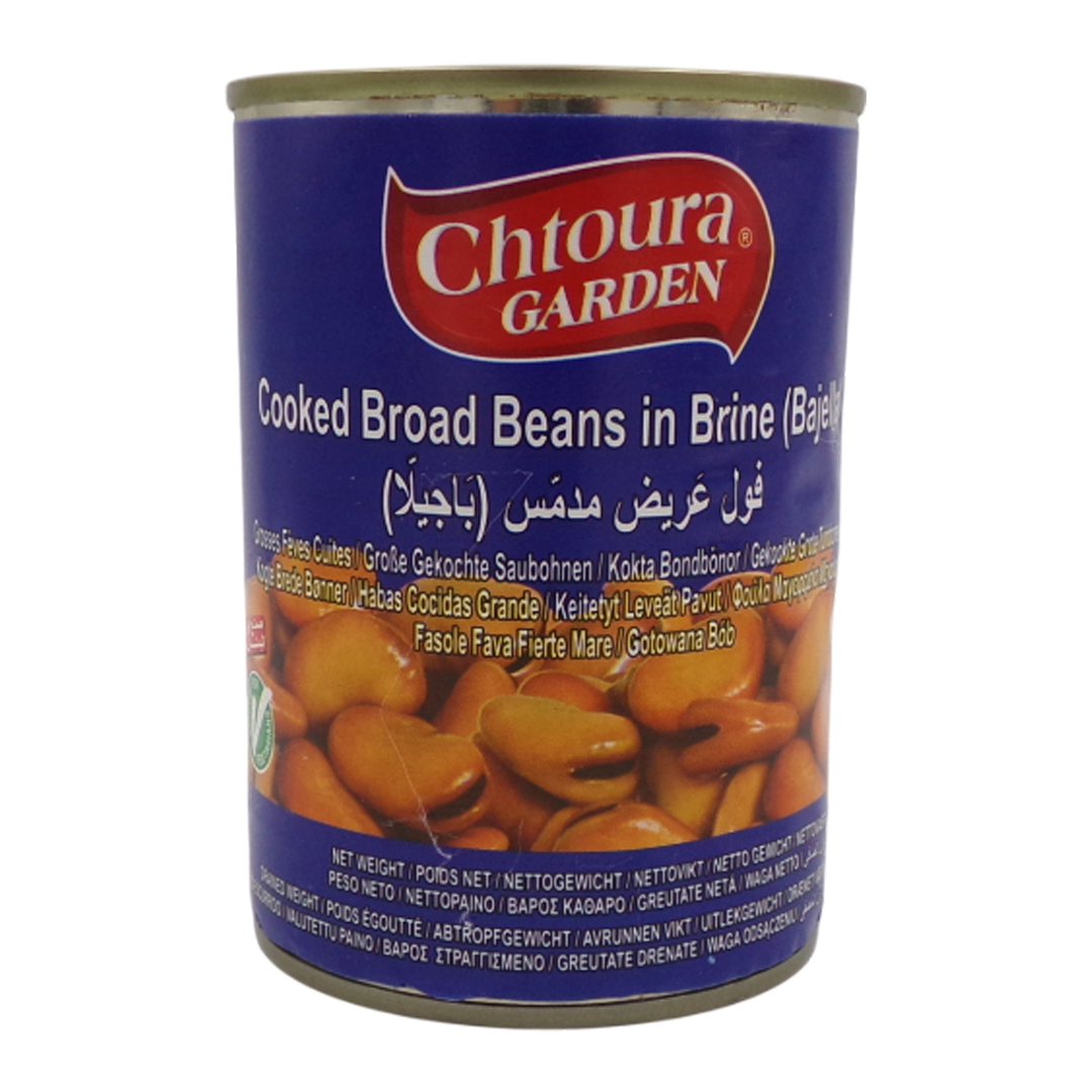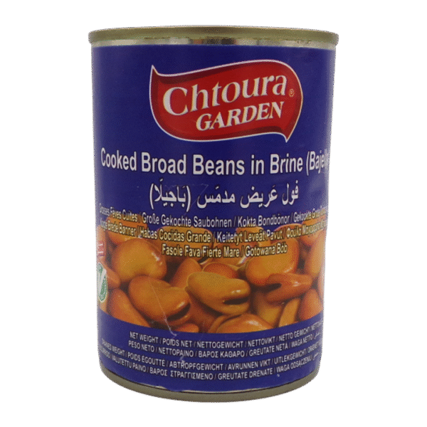 Chtoura Garden Cooked Broad Beans in Brine (Bajella) is a canned product of whole, plump, pre-cooked broad (fava) beans preserved in a brine solution. These versatile legumes are a good source of protein and fiber, making them a convenient and nutritious ingredient for various dishes, including salads, stews, and curries, or as a healthy snack.