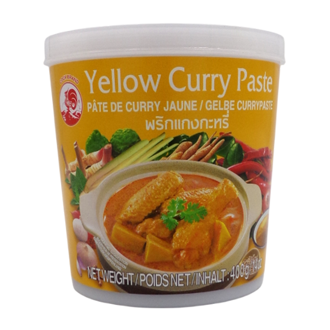 “Create authentic Thai flavors at home with Cock Brand Yellow Curry Paste, a mildly spicy and aromatic blend rooted in traditional Thai cuisine. Made with a mix of turmeric, garlic, lemongrass, galangal, and spices, this paste delivers the signature golden color and warm, slightly sweet taste of classic yellow curry. Ingredients: dried red chili (20%), shallots, garlic, lemongrass, salt, galangal, turmeric, cumin, coriander seeds, spices (cinnamon, mace).