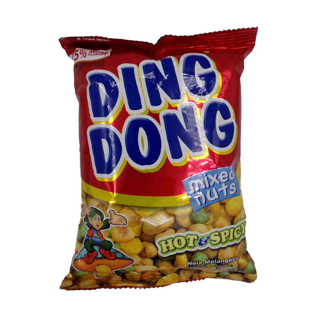 “Ding Dong Mixed Nuts Hot & Spicy is a pack of delicious and crunchy mix of peanuts, corn bits, green peas, cracker nuts, and fava beans, all seasoned with a hot and spicy twist. It has everything you want in a snack pack and more: unique flavours and exceptional textures with natural ingredients.