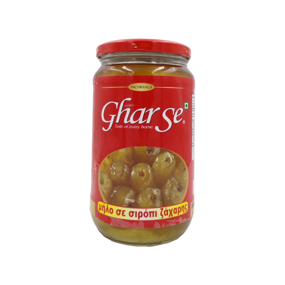 GHAR SE Apple Murabba is a sweet fruit preserve made by cooking fresh apples in a sugar syrup until they become soft, juicy, and richly flavoured. Murabba is a cherished traditional sweet in South Asian cuisine, enjoyed for its natural sweetness, fruity aroma and versatility as both a dessert and a side accompaniment.