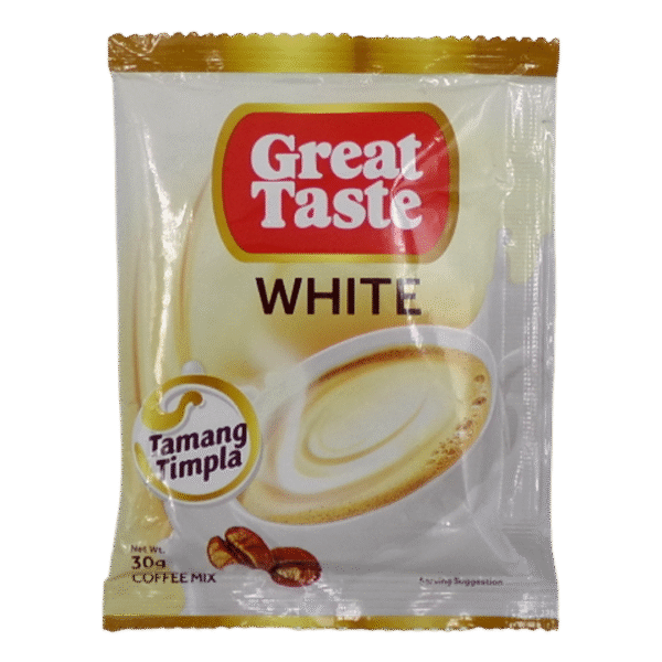 Great Taste White “Tamang Timpla” 30gr is a 3-in-1 instant coffee mix that offers a smooth, creamy, and balanced blend of robust coffee, sugar, and sweet cream.The 30-gram sachet contains the “tamang timpla” or the “right blend” of these ingredients, providing a satisfying and flavorful coffee experience.