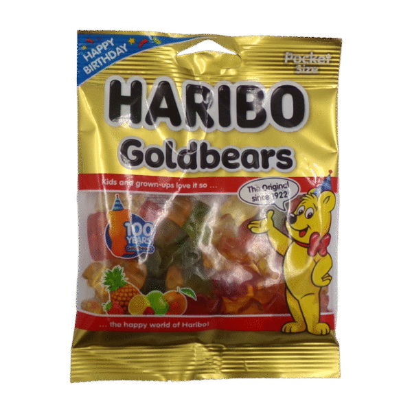 Haribo Gummy Gold Bears Candy is soft, chewy and translucent. And they are bursting with berry yummy flavour. There is nothing quite as whimsically delicious as gummy bears, a candy popular the world over for its sprightly personality and fruity taste. Squeeze them, line them up and make them dance or just plain eat them. Haribo Gold-Bears are a mixed delight of lemon, orange, pineapple, raspberry and strawberry gummy bears. These tiny bear shaped fruit flavoured jellies, kids and grown-ups love it. Mouth watering candy and are fat-free which is naturally flavoured with balanced sweetness. Traditional sweets that are perfect for parties and sharing with friends.