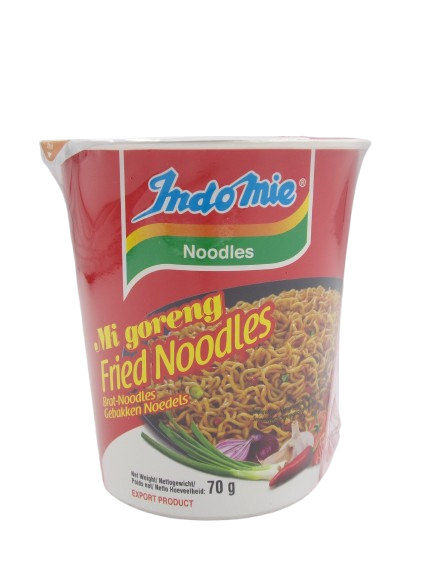 This instant stir-fried noodle cup delivers a savory, slightly sweet, and spicy flavor in a convenient, ready-to-eat format.