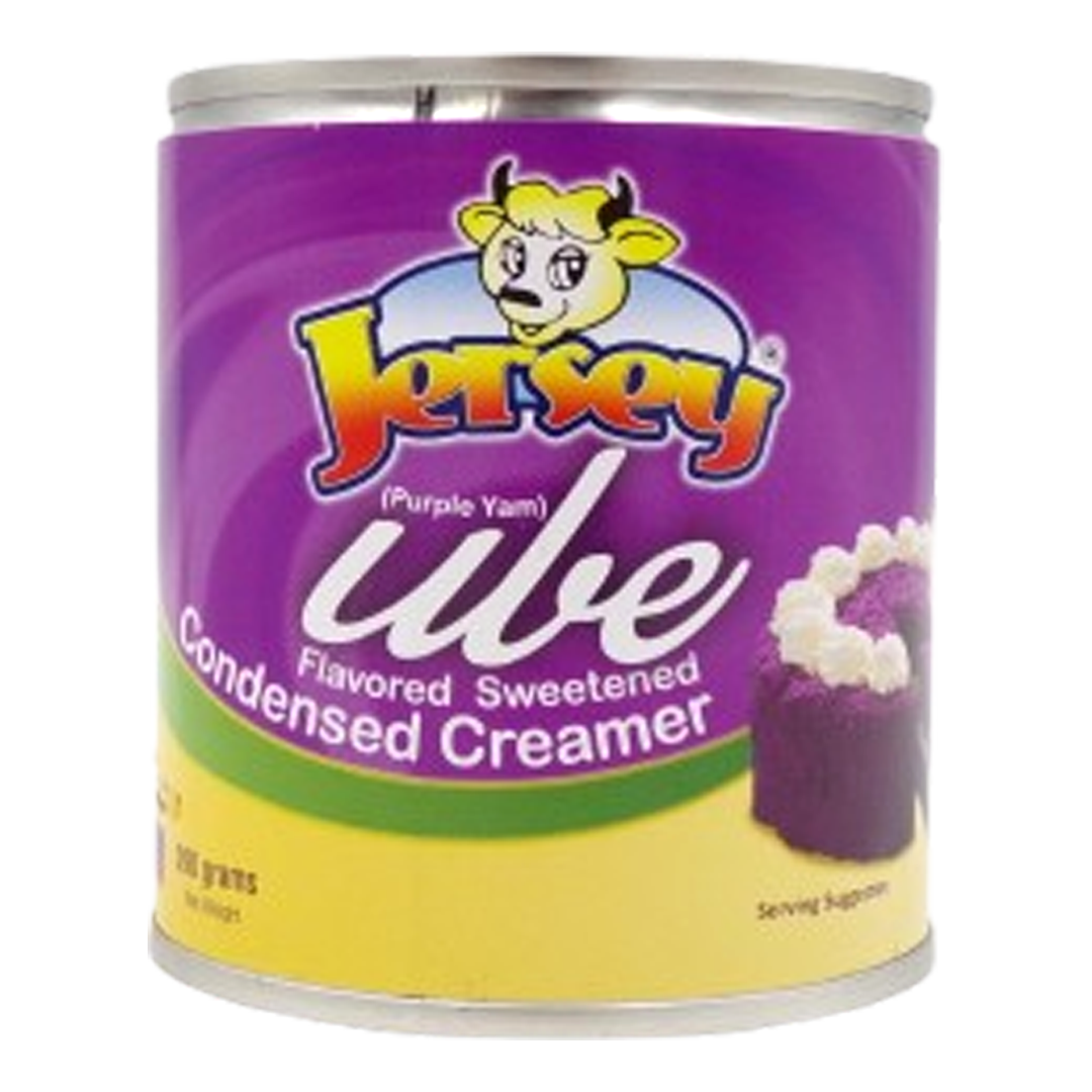 Jersey Purple Yam (Ube) Flavored Sweetened Condensed Creamer 390g is a sweet, creamy, and rich creamer that provides the authentic flavor and vibrant purple color of the Filipino purple yam (ube) to various desserts, beverages, and baked goods. It’s a convenient, versatile ingredient made with full cream milk to enhance dishes like halo-halo, leche flan, coffee, and milk tea, offering a delightful and convenient way to enjoy classic Filipino flavors. Ingredient:sugar, water, palm oil, skim milk powder, whey powder, stabilizers (like carrageenan), and artificial ube flavor. Other common ingredients can include iodized salt and emulsifiers