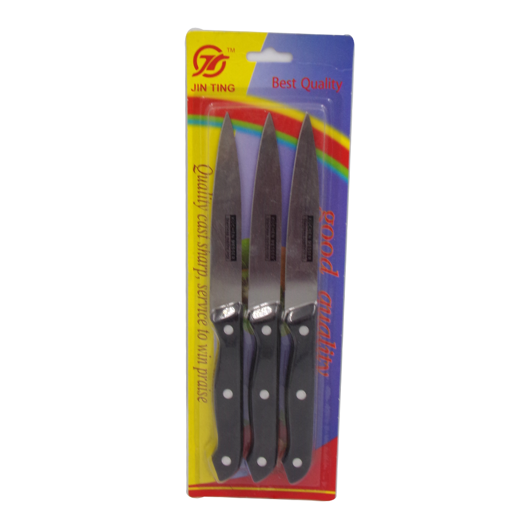 The Jin Ting 3‑piece knife set is a basic kitchen knife collection designed for everyday cutting tasks like slicing, dicing, and general preparation. It’s suitable for home kitchens and casual cooks who need a simple, functional set without bells and whistles.