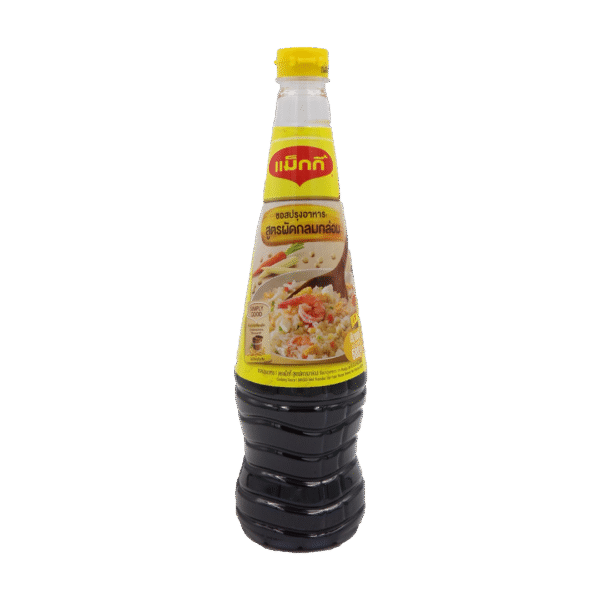 Maggi is a dark, strong, concentrated cooking sauce produced commercially and sold in bottles. It is a thin sauce, with the consistency of soy sauce or Worcestershire sauce, which it looks like. It is a hydrolysed vegetable protein-based sauce used as a substitute for meat flavouring.