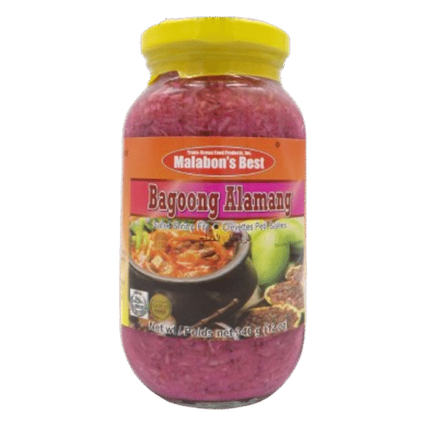 Malabon’s Best Bagoong Alamang is a premium quality shrimp paste, renowned for its rich and authentic Filipino flavor. Packaged in a 340g jar, this delicacy offers a perfect blend of fermented small shrimp, salt, and a touch of natural seasonings. It boasts a savory and slightly tangy taste, making it an ideal condiment for a variety of dishes such as kare-kare, green mangoes, and other traditional Filipino recipes. The shrimp paste has a chunky texture, vibrant pinkish-brown color, and an aroma that is both appetizing and distinct. Each jar is carefully prepared to ensure the highest standards of taste and quality, bringing the authentic taste of Malabon to your table.