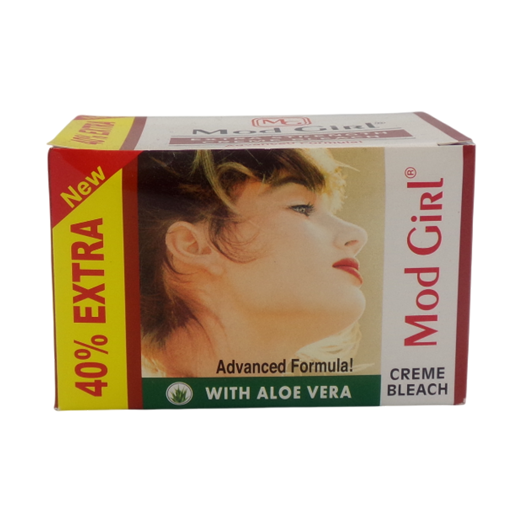 Mod Girl bleach cream is a skincare product that lightens unwanted hair on the face, arms, and body, making it appear less visible and blended with the skin tone. It functions by breaking down the hair’s natural pigment, causing the hair to lighten. The cream is designed for home use, offers a convenient solution for hair lightening, and aims to provide a smoother, more radiant, and even skin tone.