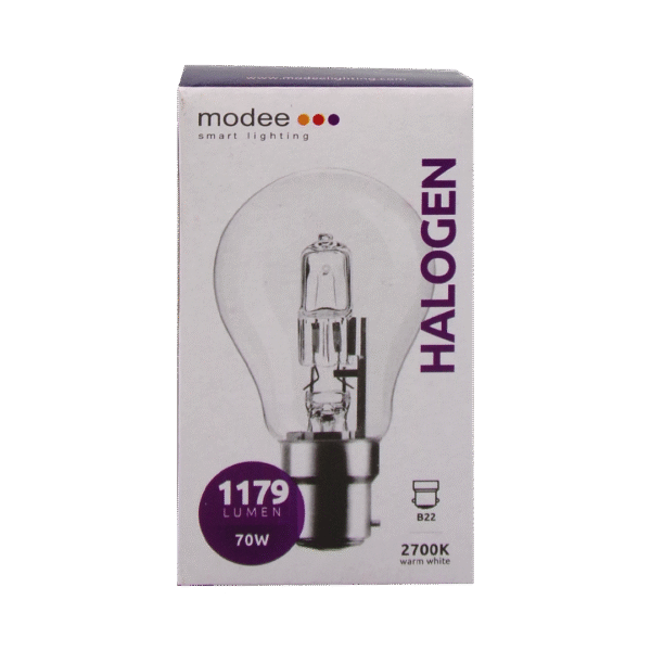 The classic Modee Halogen Classic 70W E27 halogen bulb from the ECO series, environmentally friendly, with a special design with an inner coating that reflects infrared radiation of the filament. It can be used in any luminaire.