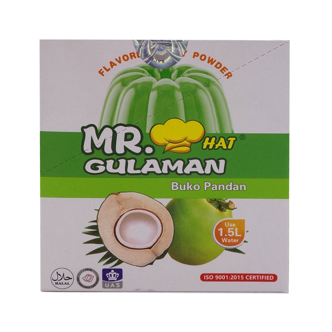 “Bring a burst of tropical flavor to your desserts with Mr. Gulaman Green Buko Pandan Jelly Powder