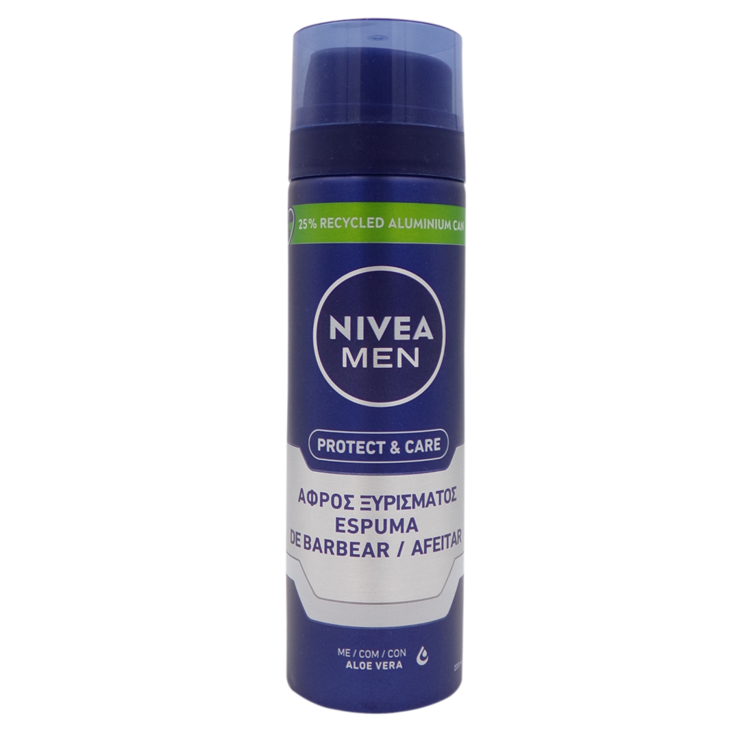 Nivea Men Protect & Care shaving foam allows the razor to glide gently over the skin, providing a comfortable shave. Its formula with Aloe Vera and Provitamin B5 protects the skin from abrasions, micro-cuts and a feeling of pulling.
