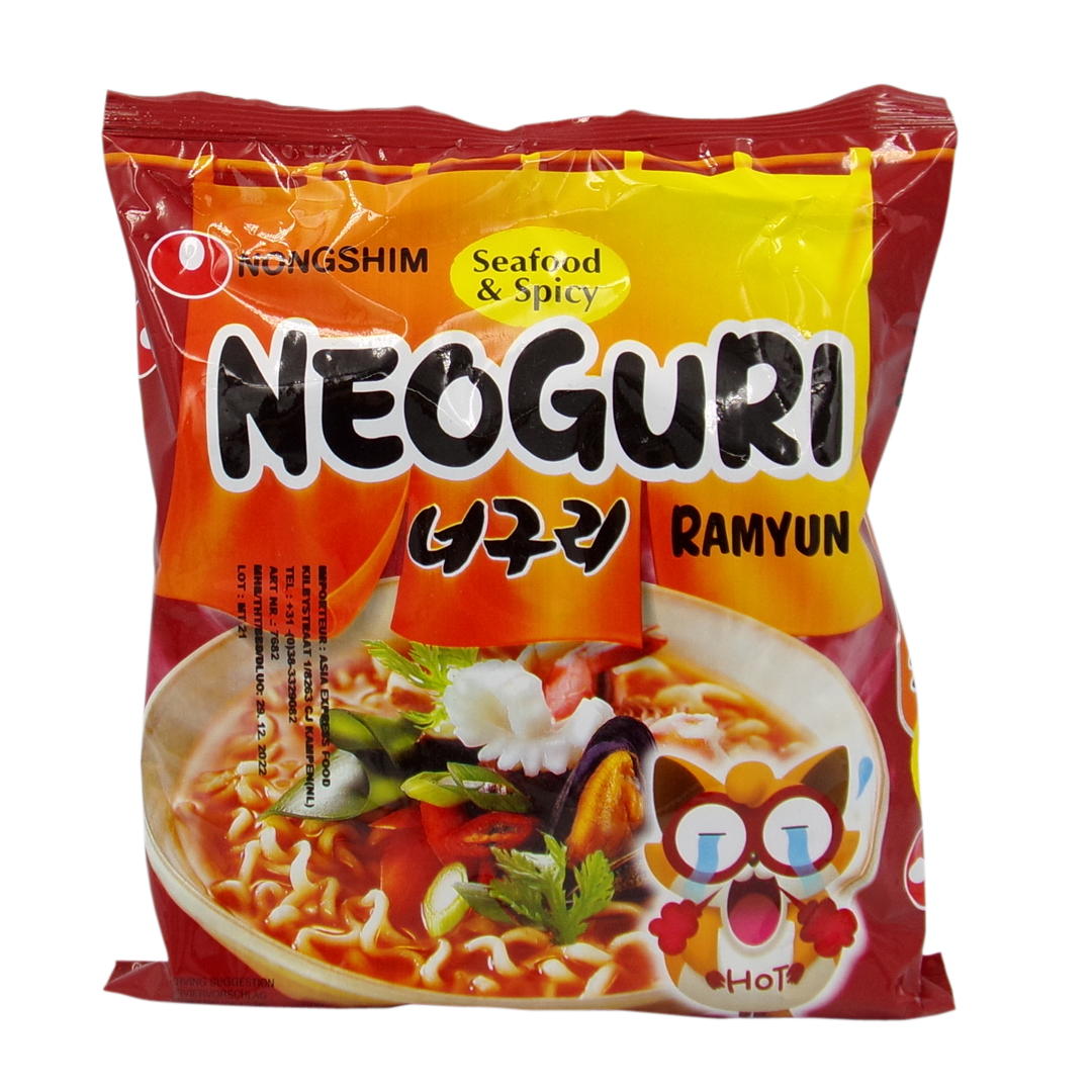 Known for its thick, chewy udon-style noodles, this ramyun offers a satisfying texture that pairs perfectly with its rich and savory broth. The soup boasts a deep seafood flavor, enhanced by a spicy kick that warms you from the inside out.