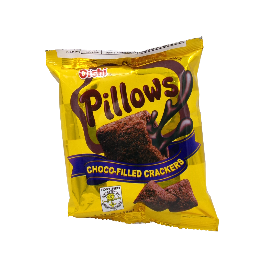 Cracker (rice, WHEAT flour, sugar, non-dairy creamer (glucose syrup, hydrogenated palm kernel oil, sodium caseinate (MILK), stabilizer (E340), emulsifier (E471), anti-caking agent (E551)), cocoa powder, iodized salt). Filling (palm oil, sugar, MILK powder, lactose (MILK), cocoa powder, emulsifier (E322 (SOY)), flavour, vitamin A palmitate, antioxidant (E319)). Statement: Caution! May contain SHELLFISH, EGG, FISH, PEANUTS and NUTS.