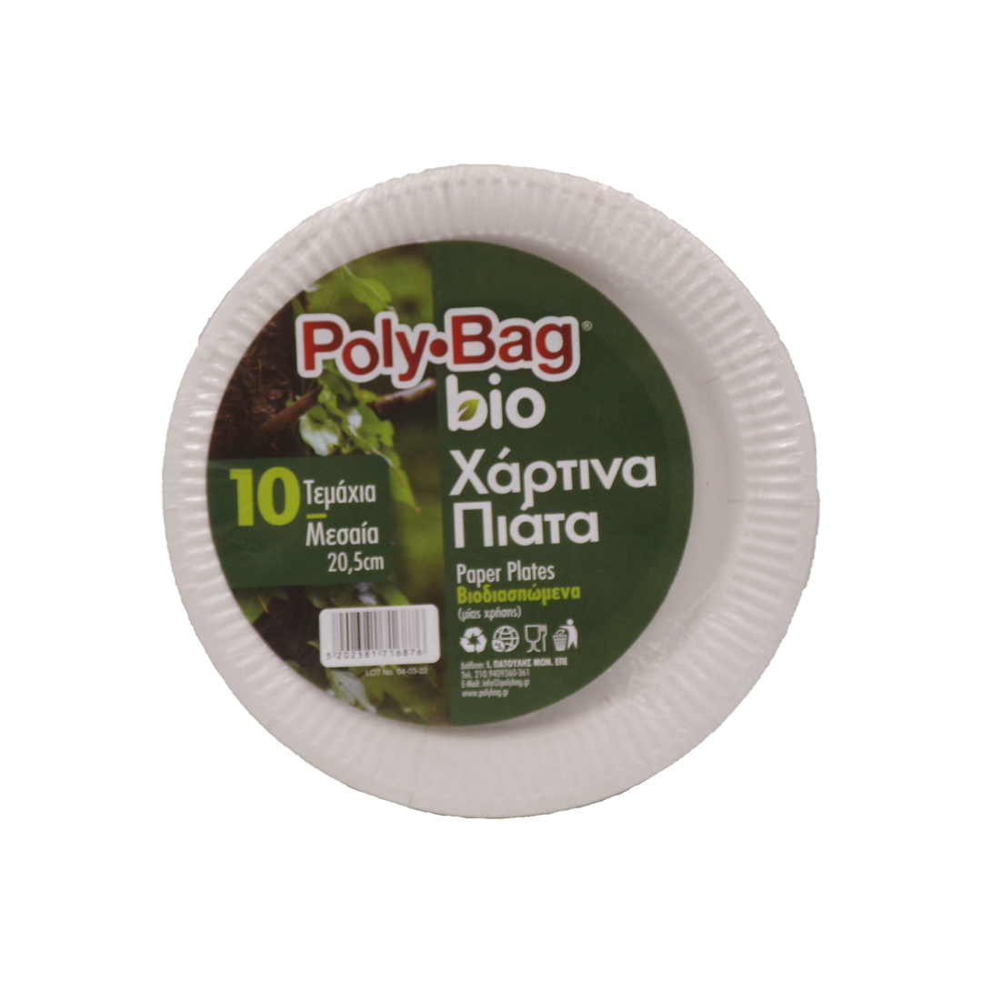 Poly-Bag Paper Plates 20.5cm are disposable dinnerware items designed for convenient use at parties, picnics, or everyday meals.