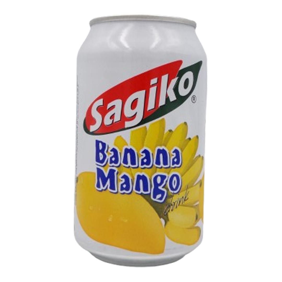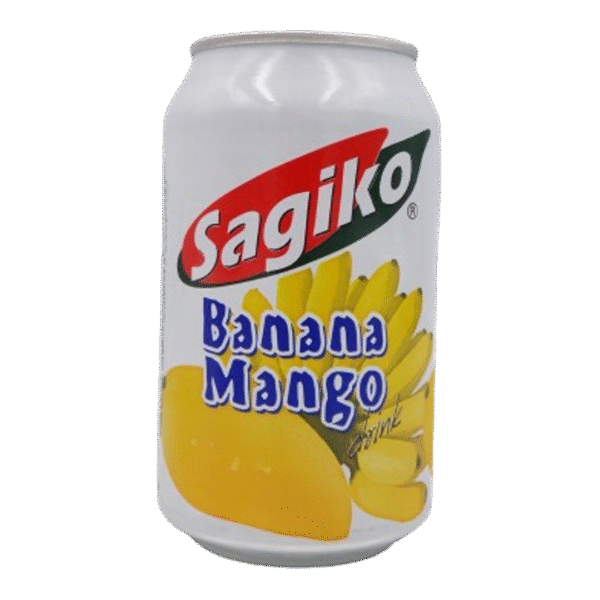 The SAGIKO BANANA-MANGO 320ML is a sweet and refreshing beverage from the Singaporean brand Sagiko, offering an exotic combination of mango and banana flavors. The 320ml drink features a dominant mango taste with a subtle banana undertone, a silky-soft texture, and a balanced sweetness. Key ingredients include water, sugar, mango puree, banana puree, citric acid (E330), thickeners (E466, E415), flavorings, and colorings. Ingredients: