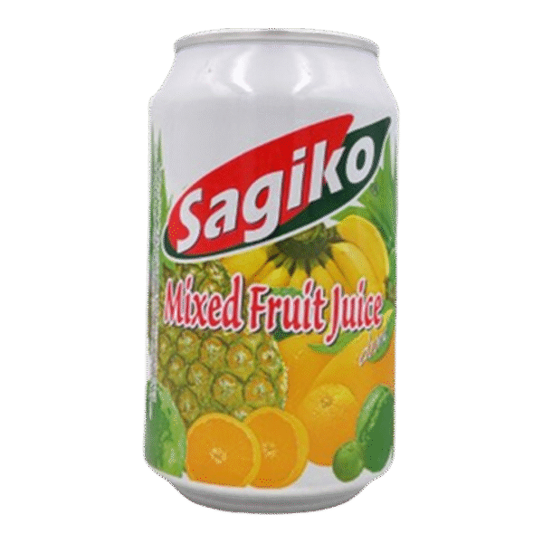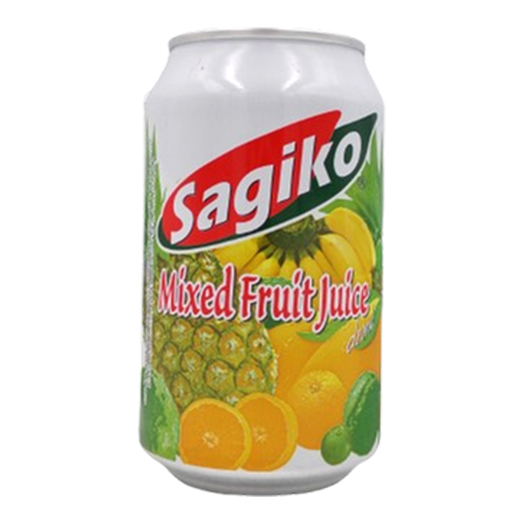 Sagiko Mixed Fruit Juice is a sweet and fresh mixed fruit drink from the Singaporean brand Sagiko, known for its quality and authentic taste. The 320ml juice contains a combination of fruit purees and concentrates, such as soursop, pineapple, mango, guava, orange, and calamansi, along with water, sugar, and flavourings. It is typically packaged in a 320ml can or as part of a carton containing multiple cans. Ingredients: