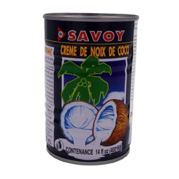 Savoy Coconut Cream 400ml is a thick, rich cream made from 70% coconut extract and water that is used to add a creamy texture and rich coconut flavor to both sweet and savory dishes, including curries, soups, smoothies, and desserts. It is a versatile, vegan, and gluten-free product suitable for various dietary needs, known for its quality and flavor. This delicious coconut cream is particularly suitable for delicious creamy cocktails… But of course also for cooking, for example for Indian and Thai curries.