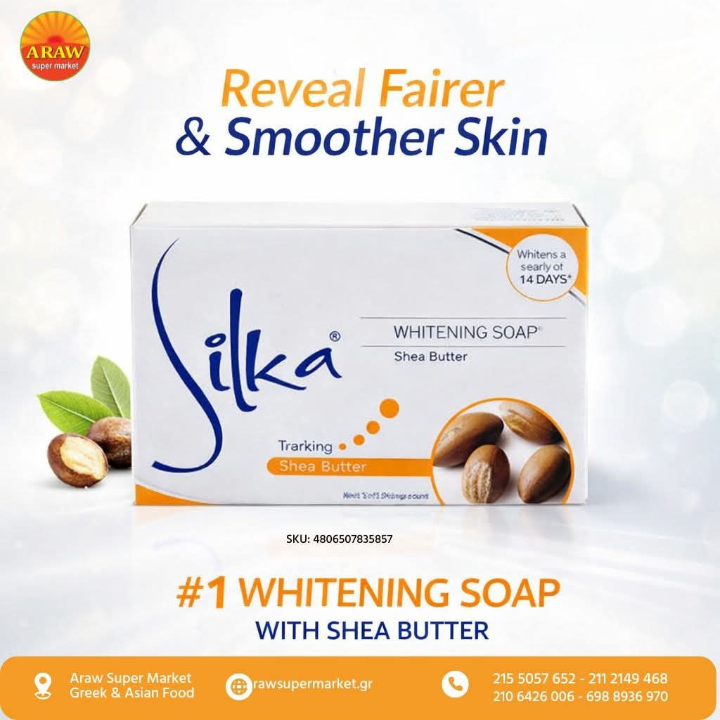 Silka Whitening Soap with Shea Butter 135g combines the nourishing properties of shea butter with effective whitening ingredients to create a luxurious skincare experience. This soap gently cleanses the skin, removing impurities while leaving it feeling soft and smooth. The rich shea butter content provides deep hydration, helping to restore moisture to dry skin and improve its overall texture. Regular use can lead to a brighter, more even complexion and it is enriched with Vitamin E.