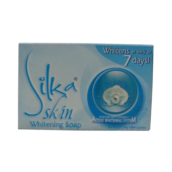 Silka’s 90g whitening soaps (Papaya or Green Papaya variants) are formulated with papaya enzyme to exfoliate dead skin cells and Vitamin E for skin conditioning and antioxidant benefits, resulting in a smoother, clearer, and lighter complexion with a fresh, fruity fragrance. The