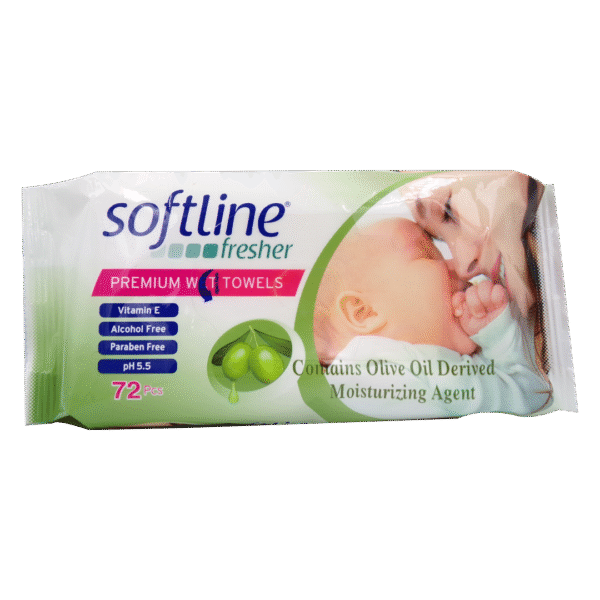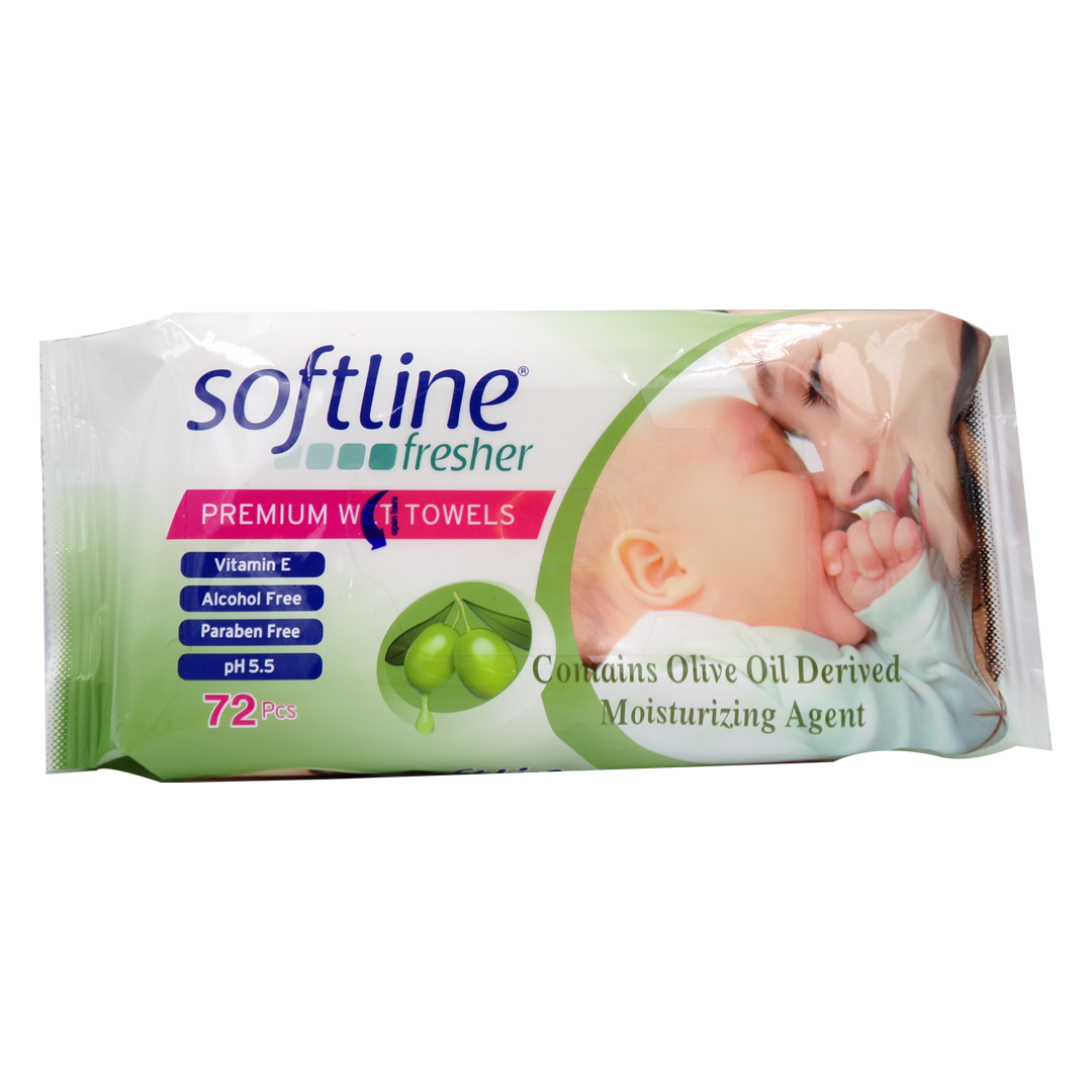 High quality baby wipes with Olive Oil extract. Softline baby wipes do not contain alcohol. They are suitable for sensitive skin, they cleanse and moisturize. With a thick, flexible and moist coating. They contain Vitamin E and have a pH of 5.5.