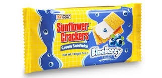 A fruit-inspired snack featuring the brand’s signature crispy soda crackers with a vibrant, sweet, and slightly tangy blueberry-flavored cream filling.