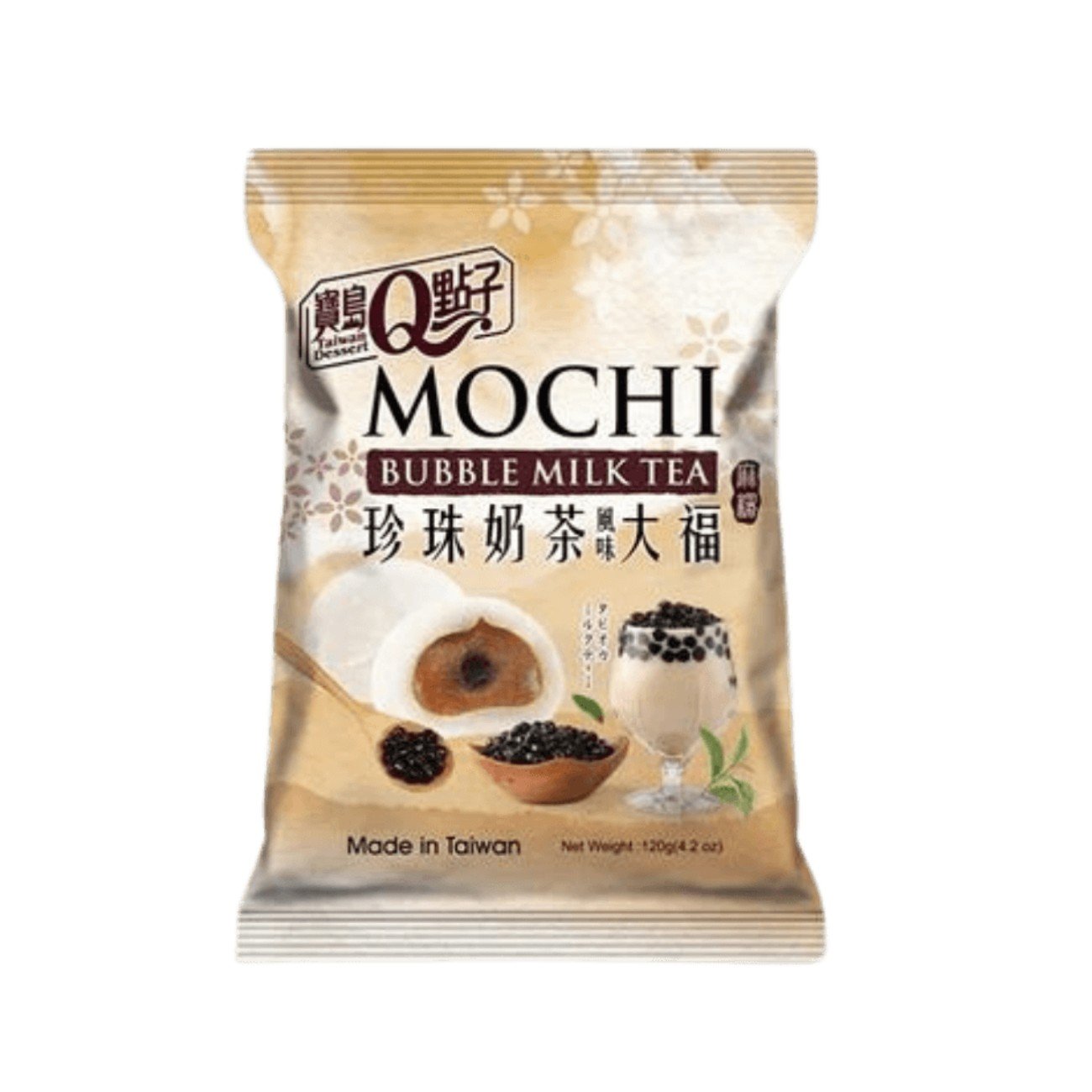 Taiwan Desert Mochi Bubble Milk Tea 120 g is a soft, chewy Asian dessert snack inspired by the popular Taiwanese bubble milk tea drink.