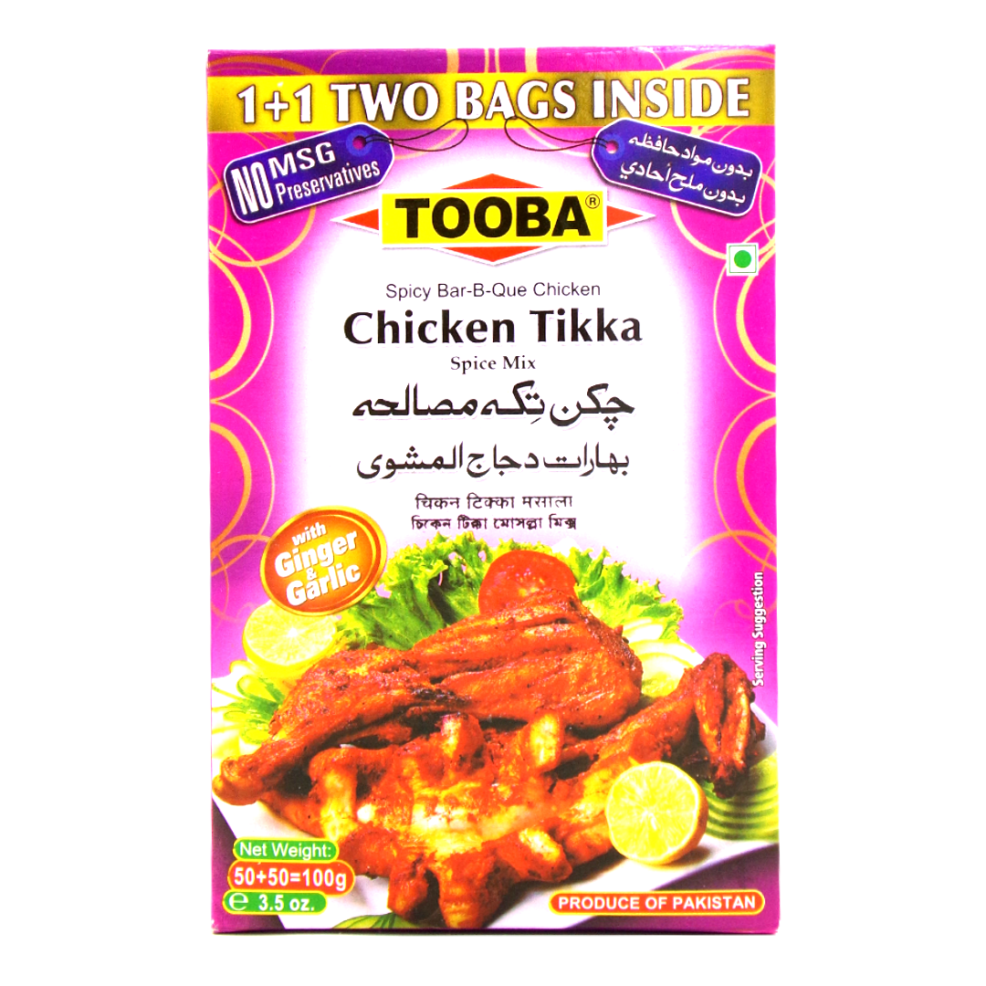 “NEW” TOOBA Classic CHICKEN TIKKA SPICE MIX Spicy&HOT |GREAT FLAVOUR| (50G 2 PEACK)100G FLAVOUR – A classic low to medium heat blend with a little smokiness reminiscent of the flavours created in a tandoor. USES – Use it to make traditional style Tikka Masala curries or use as a rub or marinade on fish or chicken. Also add to vegetable dishes. SUITABLE FOR VEGETARIANS & NON-VEGETARIANS – All our blends are plant-based and can be used in vegetable, pulse, meat and fish dishes. NO ADDED SALT, SUGAR OR ARTIFICIAL INGREDIENTS – We only use spices, herbs and other plant-based ingredients in our blends. We leave it up to you to add salt or sugar if you need to. EASY TO USE – Our large range of blends are suitable for cooks of all levels. They are created and blended by us for you to easily add world flavours to many dishes. Depending on the dish, we recommend, on average, one teaspoon of spice blend per portion.