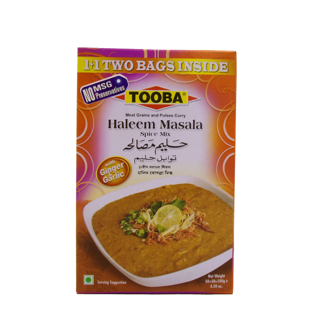 TOOBA Haleem Masala Spice Mix is a ready-to-use spice blend specially formulated for making haleem, a rich, slow-cooked South Asian stew of meat, lentils, grains and spices. This spice mix saves time and effort by combining traditionally used aromatic spices in perfectly balanced proportions.