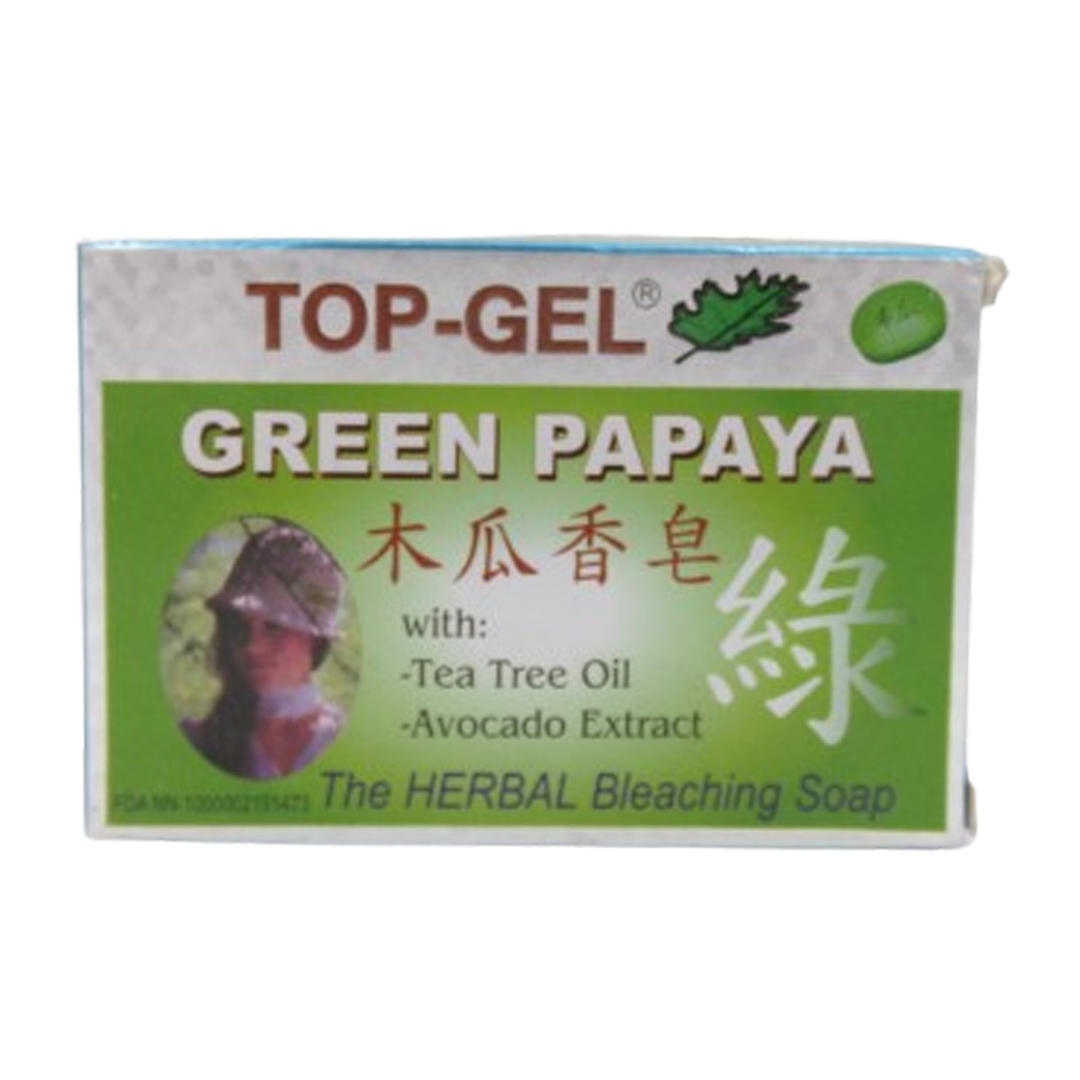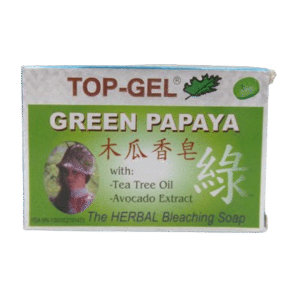 The New Original TOP-GEL GREEN PAPAYA Whitening Herbal Bleaching Soap is a safe and effective skincare solution, approved by BFAD. This soap not only moisturizes and fights signs of aging but also exfoliates to remove dead skin cells, promising visible results in just 7-10 days with regular use.