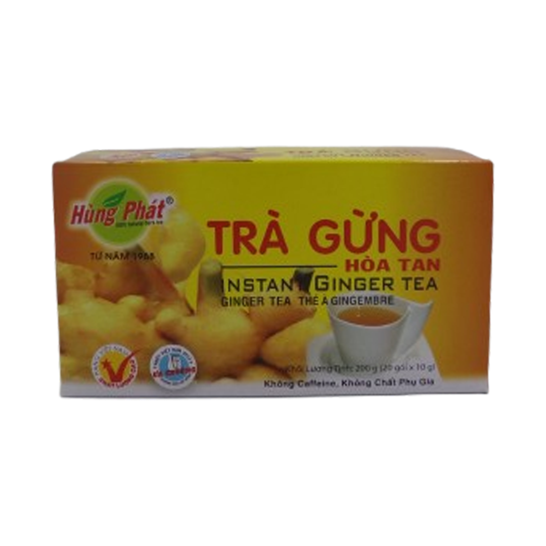 TRA GUNG GINGER TEA 200G is a Vietnamese ginger tea product known for its spicy, zesty flavor and aromatic warmth. The name “Tra Gung” translates to ginger tea in Vietnamese, highlighting its origin as a traditional herbal drink with benefits for digestion, immune support, and stress relief. Typically made from natural ginger root, this tea is consumed daily for health and beauty, providing a soothing and invigorating experience. Ingredient Old Ginger 60%, Linh Chi 30%, Sugar 10%