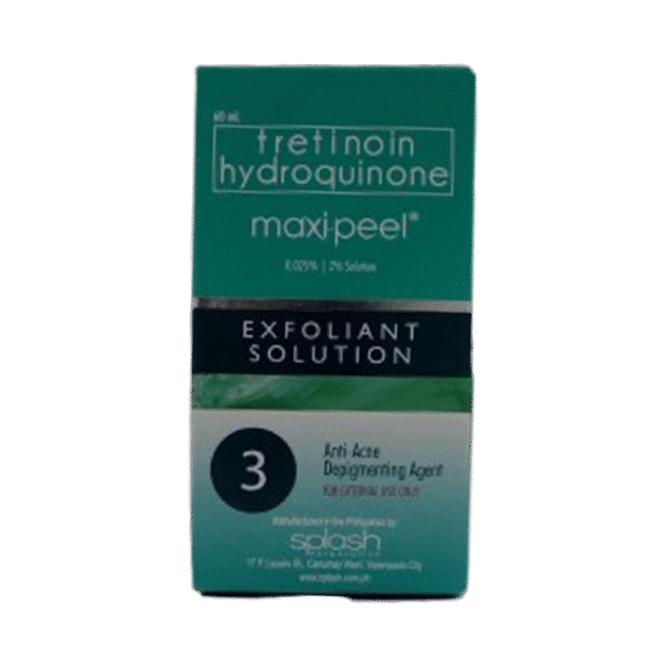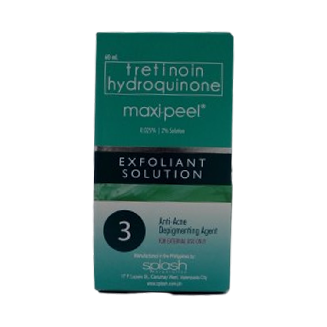 Maxi-Peel Exfoliant Solution No. 3 is designed for severe cases of acne, particularly those with 11 or more pimples on one side of the face. It aims to reduce breakouts, eliminate acne-causing bacteria, and lighten dark spots and blemishes. It contains hydroquinone and tretinoin, which are active ingredients known for their depigmenting and exfoliating properties.