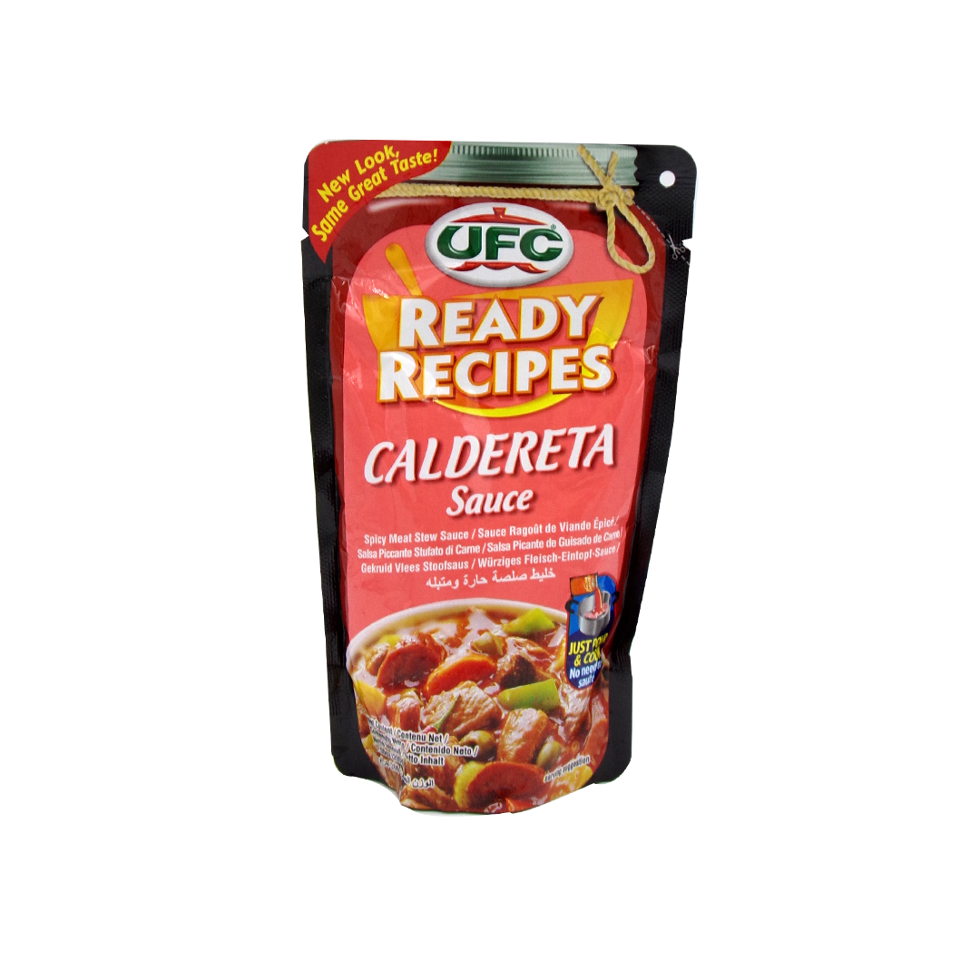 UFC Ready Recipes Caldereta Mix (Spicy Stew Mix) is a convenient, ready-to-use powder mix, which has the characteristic flavor of Caldereta sauce when dissolved in water and cooked to desired consistency.  It also has the color and aroma of a real Caldereta recipe. UFC Ready Recipes Caldereta Mix (Spicy Stew Mix) is a reddish brown free-flowing powder that has the blend of choice spices and flavors with typical tomato and distinct spicy taste.
