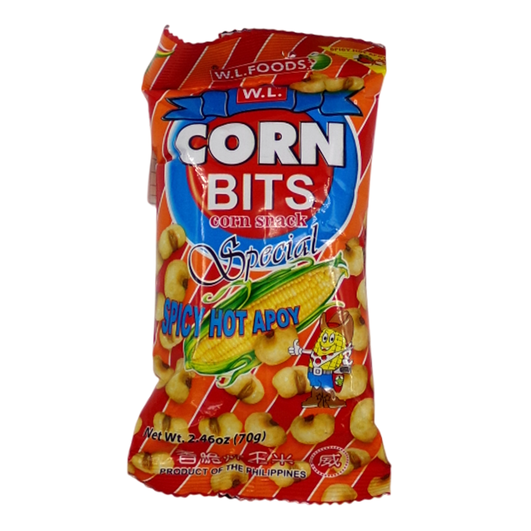 “WL Corn Bits Special Spicy Hot Apoy is a crunchy Filipino corn snack that combines a savory, corn flavor with a fiery, spicy “”Apoy”” (fire) kick from chili powder and other seasonings. Made from fried corn kernels, these bits are seasoned with a blend of spices for a bold and zesty taste, offering a popular and convenient snack for those who enjoy a spicy treat.